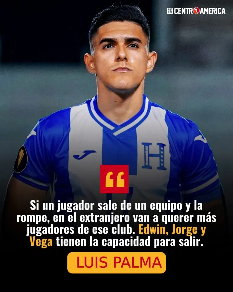 Los tres en la conversación de Palma son: “Edwin Rodríguez (Olimpia), Jorge Álvarez (Olimpia), Luis Vega (Motagua) se vio que impuso un mando y que tiene gran nivel. Hay muchos más para salir, pero que sean ellos mismos porque tienen la capacidad para salir”.