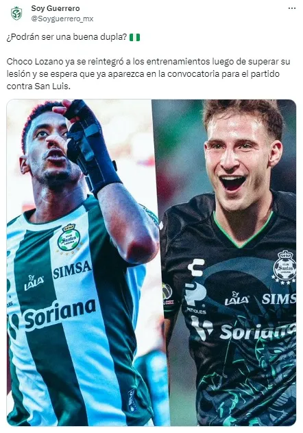 Choco se recuperó luego de cinco semanas de baja por una lesión muscular, en ese tiempo se perdió sei partidos del Santos, que es penúltimo lugar de la tabla con 7 puntos en 12 jornadas.