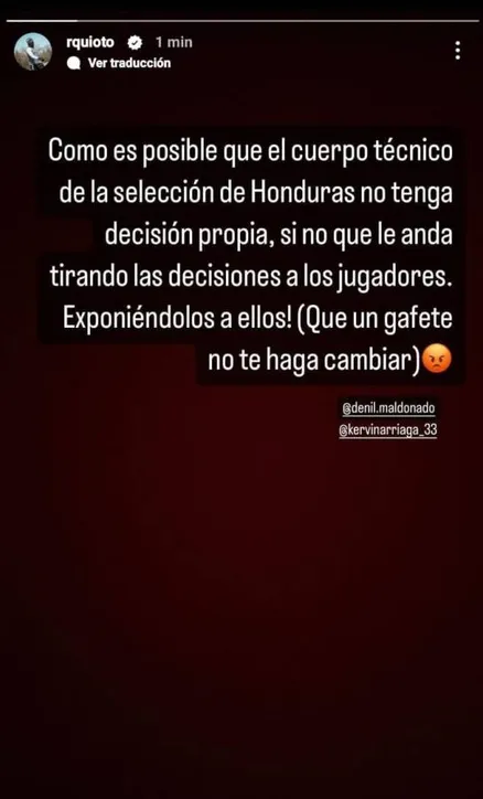 Ante esto, Romell Quioto, delantero del CF Montreal y capitán de los catrachos, no se guardó nada con un mensaje en sus redes sociales, al lanzar un dardo al cuerpo técnico de Diego Vásquez, así como a Alberth Elis que también hace unos días lanzó una crítica a algunos compañeros.