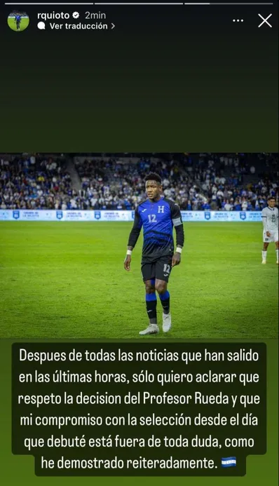 Quioto es uno de los legionarios catrachos y también uno de los capitanes, por lo que se esperaba con ansias su presencia en esta partido vital, pero Rueda decidió no tomarlo en cuenta debido a una falta al reglamento y esto provocó que el delantero respondiera rápidamente.