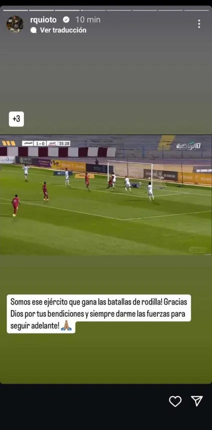 Quioto al ver que quedó fuera de la lista no se quedó callado, porque con una historia en su cuenta de Instagram puso un gol que hizo en el último juego de su equipo, acompañado del siguiente texto: “Somos ese ejército que gana las batallas de rodilla! Gracias Dios por tus bendiciones y siempre darme las fuerzas para seguir adelante!“.