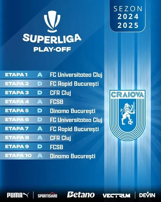 Cabe destacar que esta ronda en el fútbol rumano la comienzan con el 50% de los puntos, por lo que las posiciones y la diferencia de puntos también se mantiene. A su vez cada equipo recibirá cinco partidos de local y visitará a sus rivales la misma cantidad de ocasiones.