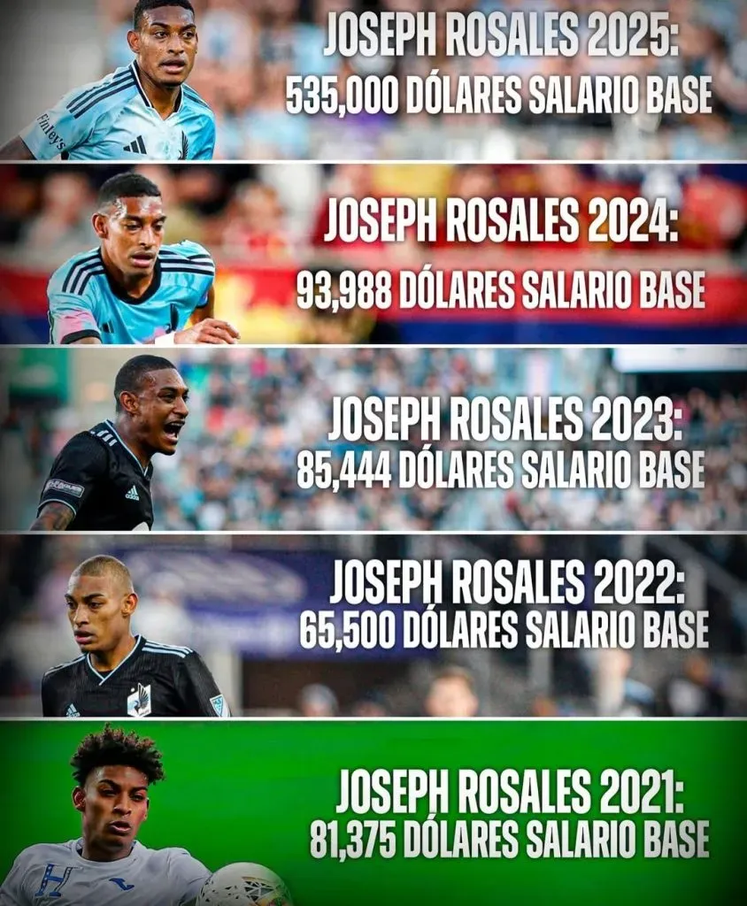 Y es que Rosales inició su trayectoria en la MLS con un sueldo base de 81 mil dólares al año, unos 6700 dólares al mes, a actualmente devengar un salario de medio millón de dólares por temporada.