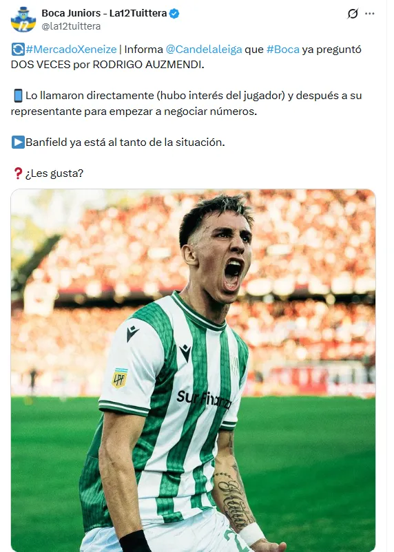 Actualmente Auzmendi es dirigido por Pedro Troglio en Banfield, pero las pláticas con Boca ya han comenzado para sumar al delantero de 1.91 de estatura y que convirtió cuatro goles en 15 partidos disputados.