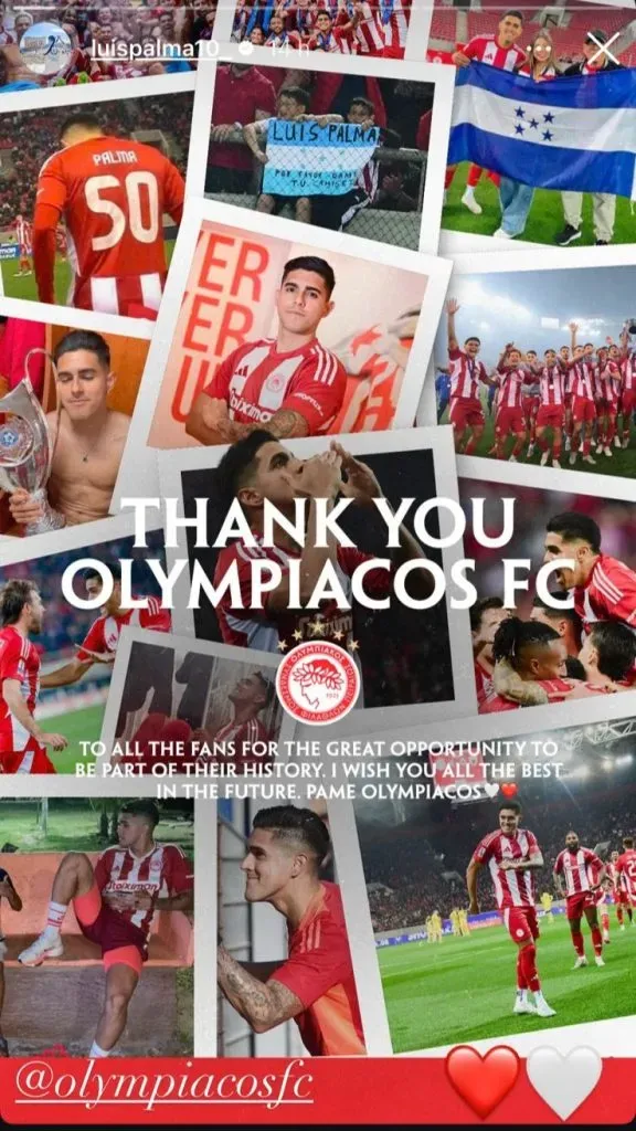 Palma en su cuenta oficial de Instagram publicó una historia despidiéndose de Olympiacos.