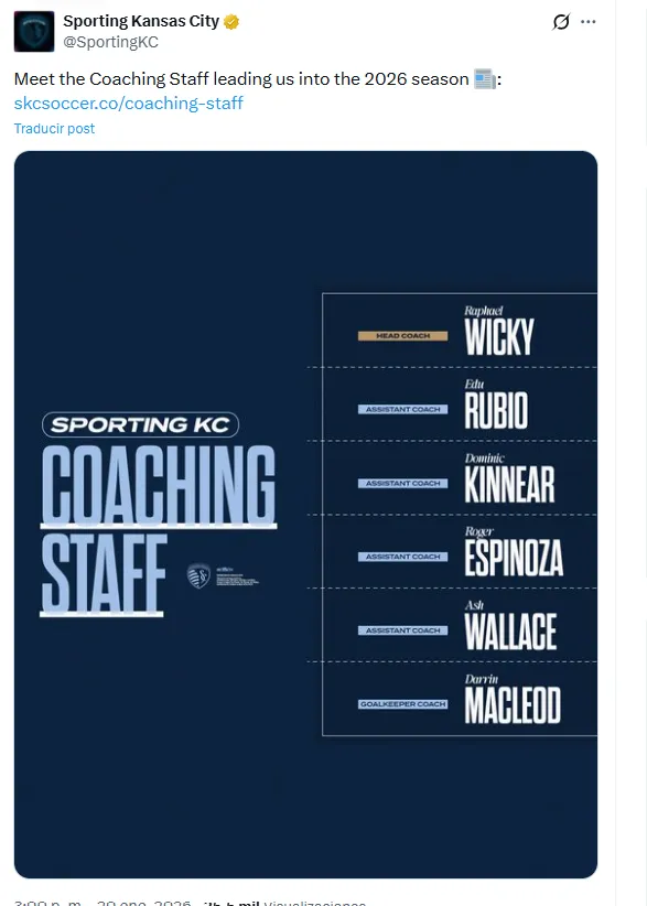 La nueva temporada de la MLS comienza en febrero de 2026 y las fichas comienza a moverse en el Sporting Kansas City, equipo que ya anunció su nuevo cuerpo técnico del que forma parte Roger Espinoza.