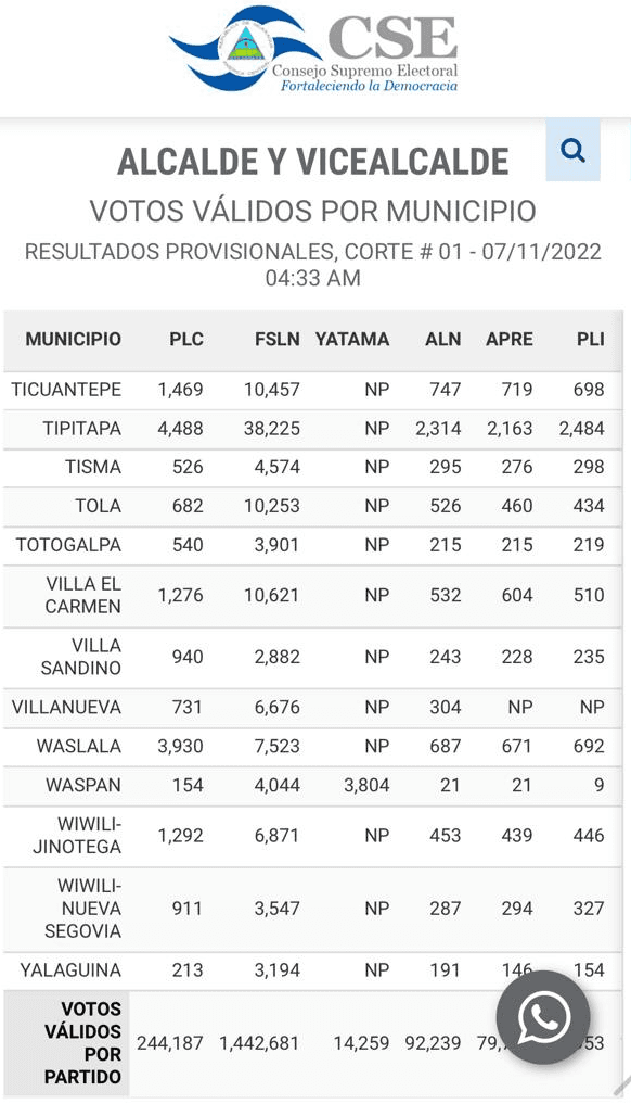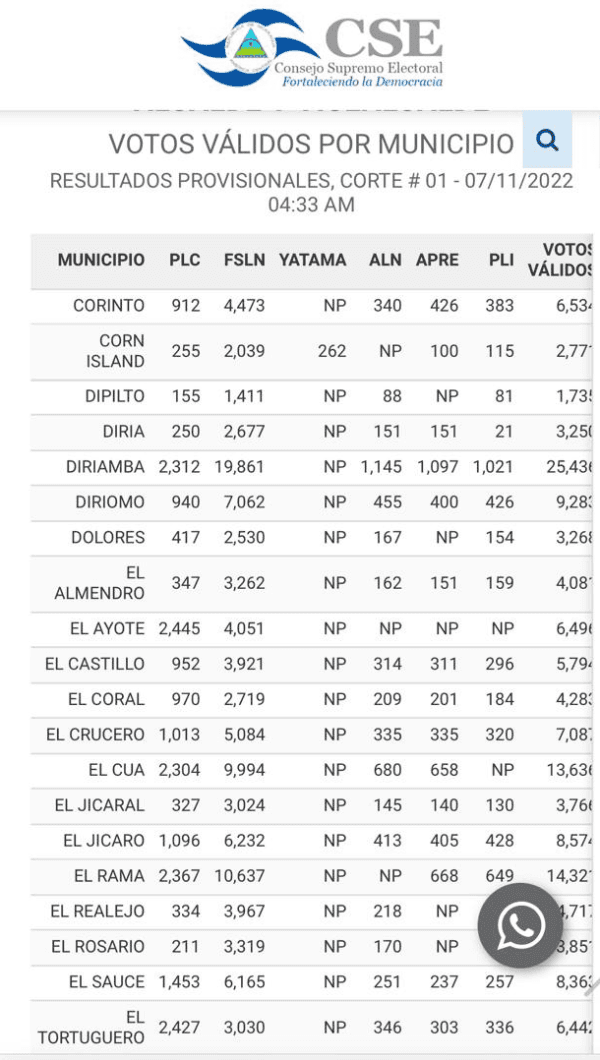 Elecciones municipales en Nicaragua 2022: resultados parciales y definitivos
