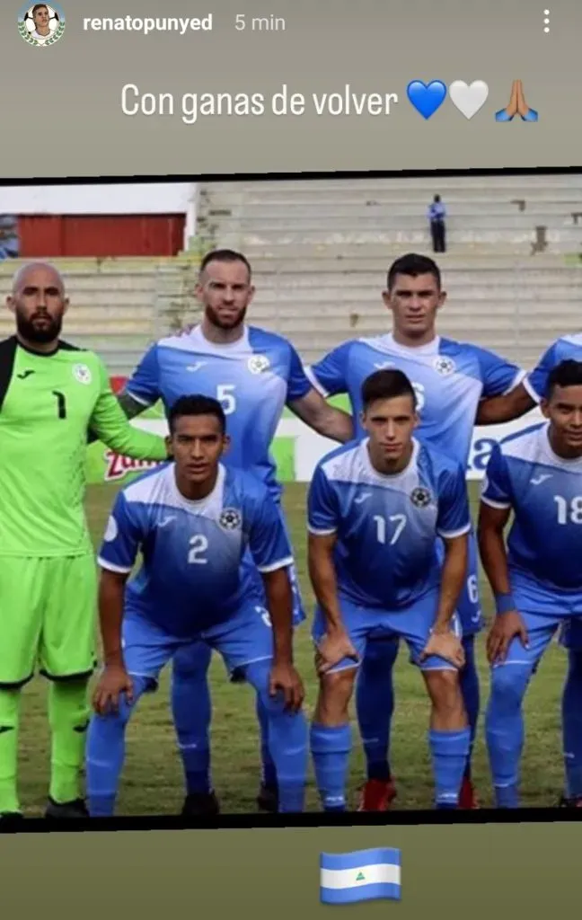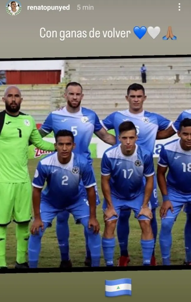 Renato Punyed tiene ocho partidos con el seleccionado pinolero. La última vez que defendió los colores de Nicaragua fue en octubre del 2020, en un encuentro amistoso contra Honduras cuando Juan Vita era el entrenador. Desde entonces, no fue llamado por ningún otro seleccionador.