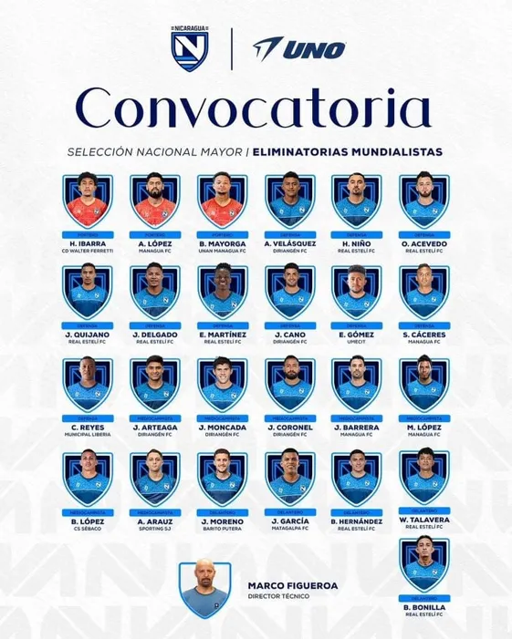 El seleccionador nacional Marco Antonio “Fantasma” Figueroa sorprendió con su más reciente convocatoria de la Selección de Nicaragua para enfrentar a Honduras y Haití el próximo 13 y 18 de noviembre, respectivamente, en el cierre de la Eliminatoria Mundialista de la Concacaf. La lista dejó varias ausencias notables y la inclusión de nuevos nombres, en una clara señal de que el técnico busca cerrar su ciclo con un mensaje fuerte hacia los jugadores y el entorno futbolístico nicaragüense.