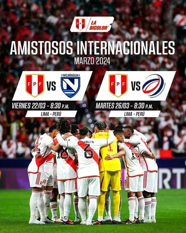 Con un emotivo post en su cuenta oficial de X , la Federación Peruana de Fútbol (FPF) confirmó que afrontará dos duelos amistosos en el mes de marzo. “¡Vuelve nuestro cariño bonito, vuelve la bicolor! Junto a la mejor hinchada, enfrentaremos a Nicaragua y República Dominicana”, se lee en la publicación.