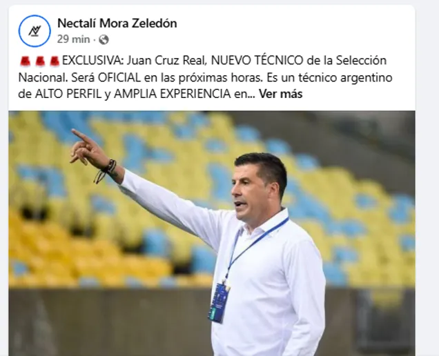 “Juan Cruz Real, nuevo técnico de la Selección Nacional de Nicaragua. Será oficial en las próximas horas”, publicaba Nectalí Mora Zeledón en su página de Facebook.