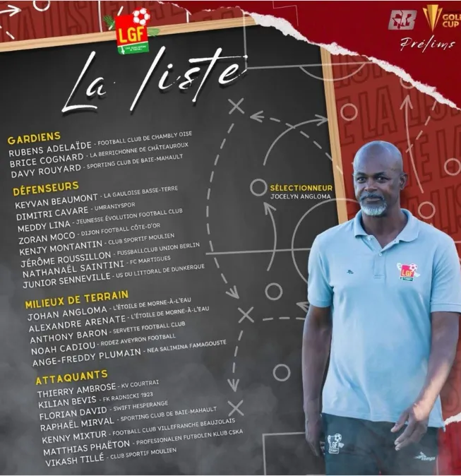 La lista de Guadalupe está integrada por 10 jugadores que están presentes en diversas ligas de Europa. La mayoría de ellos son franceses, ya que Guadalupe es un departamento de ultramar de Francia.