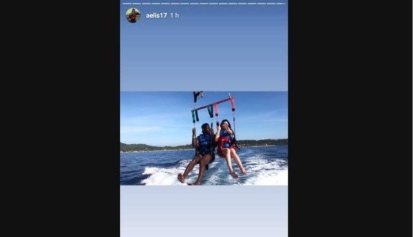 Al parecer, el plan era pasar desapercibidos; sin embargo, el futbolista posiblemente no se resistió a subir una historia de Instagram en la que aparecía subido a una atracción acuática al lado de la cantante.