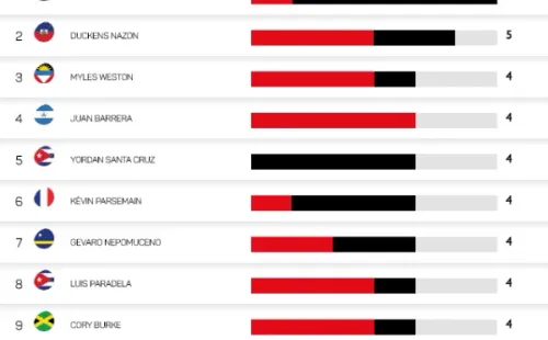 Curazao, con 21 goles anotados y comandados por el máximo artillero de la etapa: RangeloJanga(6), lidera las posiciones con su arco invicto y se perfila como el principal favorito a quedarse con el honor, pues cerrará su participación en Antigua.