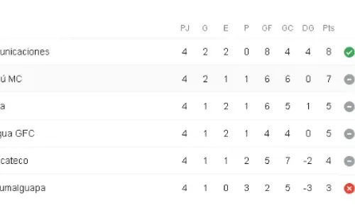 Comunicaciones en sus primeras cuatro presentaciones, ha tenido un saldo de dos victorias y dos empates. Ninguna derrota. Para darle un total hasta la fecha de ocho puntos, con cuatro goles a favor y cuatro en contra. Números que logran posicionar al equipo en la primera posición del Grupo A.