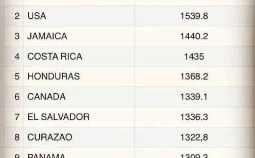 El equipo norteamericano se fue arriba de La Selecta por apenas tres puntos desplazándolo al séptimo lugar en la lista. Canadá se quedó con 1339 puntos, mientras que El Salvador llegó a 1336.