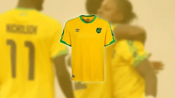 LosReggae Boyz se han reforzado con muchos jugadores de alto nivel y su camiseta no se queda atrás. La marca UMBRO respetó el tradicional amarillo en casi la totalidad de la camiseta titular. En los brazos y hombres es donde aparece lo más interesante con los colores de bandera y un tramado.