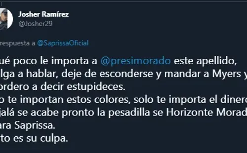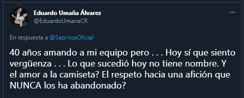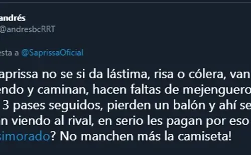 Mediante las redes sociales los aficionados del Saprissa expresaron su molestia por el mal momento del equipo y además, por haber recibido una paliza en el Clásico Nacional. Se puede ganar, perder o empatar en el fútbol. Pero se entienden las formas, y el conjunto Morado la verdad es que no estuvo a la altura.