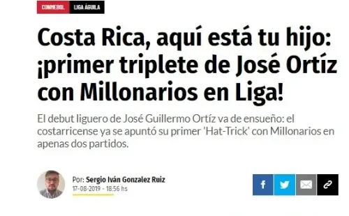 Estos 3 goles, que le permitieron llevarse el balón del partido a su casa, le sirven a José Guillermo Ortiz para ponerse de entrada como segundo en la tabla de goleadores de la liga colombiana. En Bogotá están asombrados con la capacidad goleadora del costarricense y los titulares de prensa ya lo demuestran.