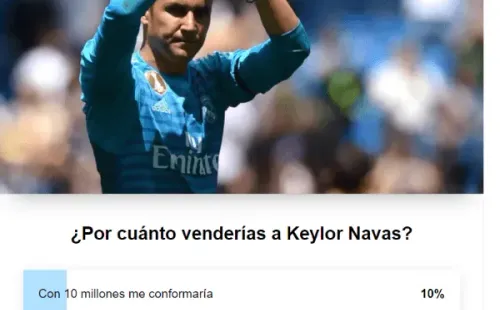Cabe decir que para los hinchas de la escuadra ‘merengue’, Navas vale mucho más de 10 millones. En una encuesta realizada por OK Diario Madridista con más de 2000 votos, la mayoría de la afición señaló que vendería al portero de las 3 Champions consecutivas por más de 20 ‘kilos’.