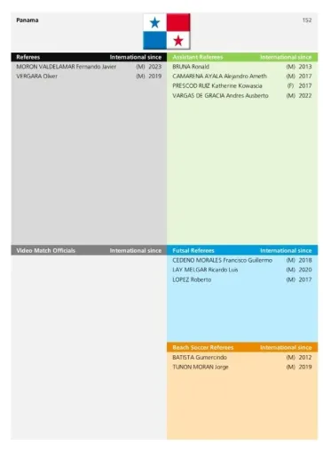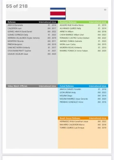 Entre los elegidos están árbitros y asistentes de futbol masculino y femenino, también en la rama del futsala y futbol de playa. Además, en el listado destaca que solo un representante fue elegido para el VAR, siendo la árbitra nicaragüense Tatiana Guzmán que es internacional desde el 2014.