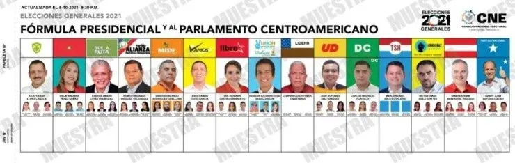 Se avecinan las elecciones generales de Honduras 2021. Estas, concretamente,se realizarán el domingo 28 de noviembre. Y luego de que se sortearan las casillas que ocuparán los partidos políticos, candidaturas independientes y alianzas por el Consejo Nacional Electoral (CNE) en las papeletas electorales, se conoció que serán unos comicios histórico por los numerosos candidatos y candidatas que se presentaron en los tres niveles (presidencial, municipales y diputados) ya que se trata de más de 30 mil.
