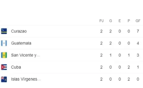 La Selecta comenzó con un triunfo 2-0 ante Granada, que dejó críticas por el rendimiento del equipo. En la segunda jornada empató ante Montserrat y complejizó su clasificación. Hoy está segundo, afuera de todo, por la diferencia de gol superior que tiene Antigua y Barbuda. El próximo sábado se cruzarán con Islas Vírigenes Estadounidenses, donde deben aprovechar y marcar una buena cantidad de tantos, y definirán su pase ante losantiguanos en El Salvador.
