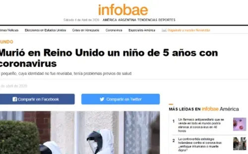 En Gran Bretaña también se sorprendieron por el caso de un muerto muy joven. Se trata de un niño de 5 años que contrajo el virus y no pudo ser salvado en el hospital. Los síntomas en él fueron muy fuertes, entró en terapia intensiva y falleció a los pocos días. Esto revolucionó al país europeo y está siendo analizado hasta por el propio gobierno. Familiares evitan que se sepan datos del nene.