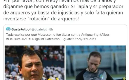 Esta justificación (y la decisión en particular de poner a Moscoso en el banco) causó el enojo de Juan José Paredes, ex arquero de los albos que se volcó en las redes sociales para manifestar su malestar. “O sea, ¿Se pierde la titularidad por estar en Selección?Pfff, por favor“, opinó primeramente.