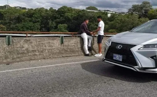 El futbolista iba conduciendo su automóvil, y cuando se percató de lo que estaba pasando, se detuvo y bajódel mismo, para intentar convencer al hombre de seguir viviendo.