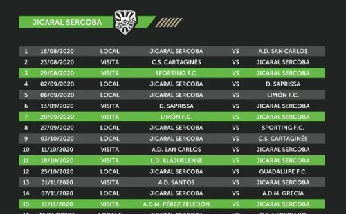 A continuación, el fixture individual de los Jicaral, creado por la cuenta oficial de Twitter de la Unafut: