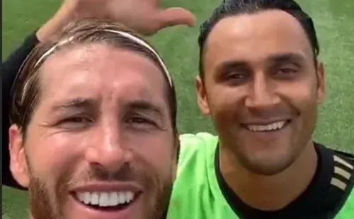 Mientras Ramos hablaba a la cámara sobre lo que había sido la práctica, detrás suyo apareció el arquero tico saludando a los seguidores de las redes del Madrid.