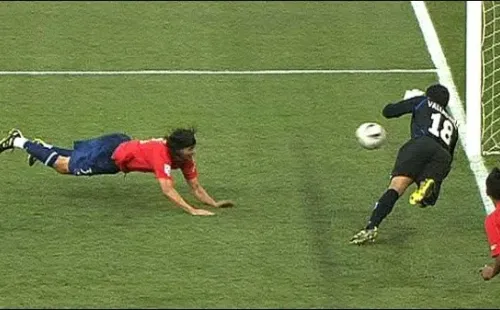 Tras una pelota parada ejecutada por Matías Fernandez al segundo palo,apareció Arturo Vidal para hacer la doble jugada; el centrocampistaconectó de cabeza, y dentro del área recibió Waldo Ponce. Era gol cantado…hasta que apareció San Noel: