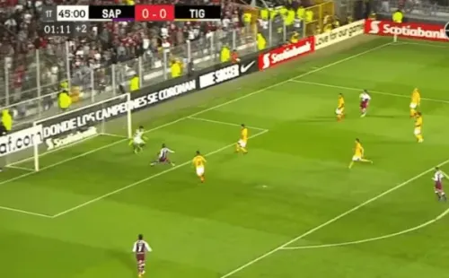 Saprissa antes del gol, en una jugada que nadie pudo creer el fallo a los últimos minutos del primer tiempo. Rubigol recibió un pase de Bolaños por derecha, solo, para empujarla y decretar el 1-0, pero no pudo conectar correctamente y la pelota se fue.