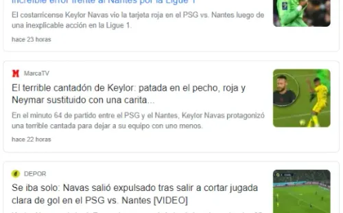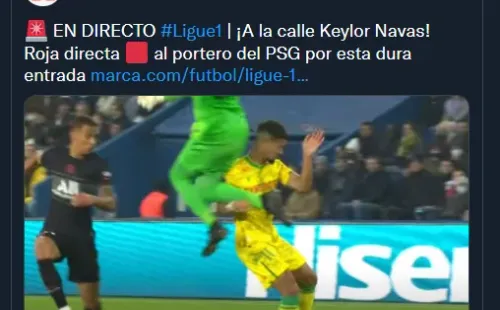 Keylor Navas no tuvo su noche ante el Nantes en una nueva jornada del PSG luego de ser expulsado en el segundo tiempo despuésde una salida imprudente, el guardameta tico tuvo que abandonar el terreno de juego. Y ante este escenario, hubo reacción por parte de los medios de comunicaciones internacionales en sus principales portadas destacando esta jugada de Keylor Navas quien no aprovechó por completo esta oportunidad tras la ausencia de Gianluigi Donnarumma por molestias físicas.