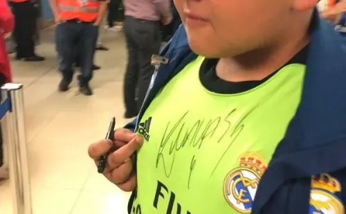El tico le terminó firmando una camiseta, y el pequeño chapín no pudo evitar emocionarse, sonreír, y derramar lagrimas de alegría por poder cumplir años y recibir un regalo de tremenda magnitud: conocer a su ídolo.