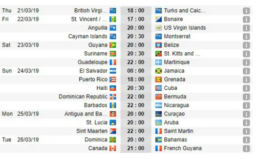 08- San Cristóbal y Nieves (6pts) –Disputará su último partido en condición de visitante ante Surinam (23/3).