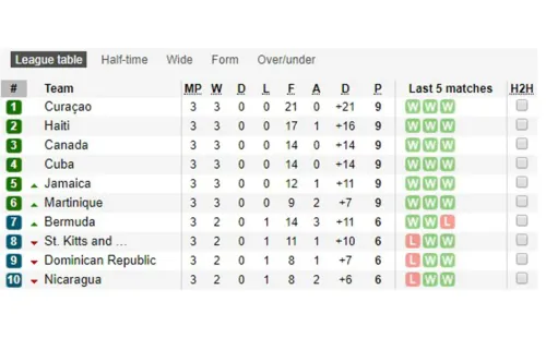 06- Martinica (9pts) –Disputará su último partido visitando a Guadalupe (23/3).