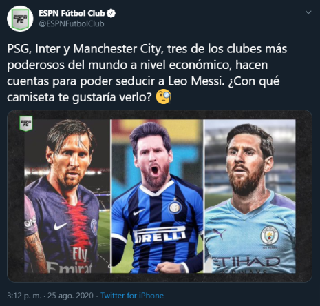 Los parisinos están dentro de los dos equipos que más posibilidades tienen de quedarse con Messi. El otro que está cerca es el Manchester City, cuentan con dos viejos conocidos como Sergio Agüero y Pep Guardiola. Las próximas horas serán vitales para confirmar el futuro del futbolista más importante de la historia del Barcelona y del mundo.