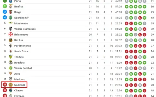 Mientras tanto, el Nacional de Madeira de Bryan Rochez está oficialmente en zona roja. A pesar de ser el máximo anotador del equipo (8), por ahora Nacional tiene 20 puntos, y es decimo sexto en la tabla de colocaciones.