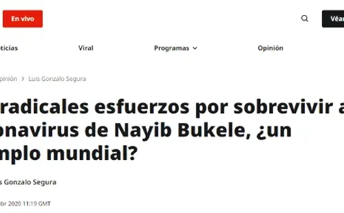 La agencia de noticias rusa, RT Internacional, destacó a Nayib Bukele como un ejemplo mundial de la lucha ante el coronavirus: “El Presidente salvadoreñojamás será cuestionado por falta de presteza ni contundencia en su enfoque contra el coronavirus, pues ha tomado medidas de gran repercusión, tanto a nivel sanitario como a nivel económico, rozando en ocasiones incluso lo revolucionario”, destacaron en una de sus notas.