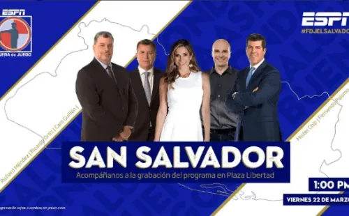 El español estará muy pronto en la capital salvadoreña, pues la cadena ESPN gabará el programa Fuera de Juego en Plaza Libertad. Lo acompañarán Fernando Palomo, Richard Mendez, Ricardo Ortiz, y Carolina Guillen.