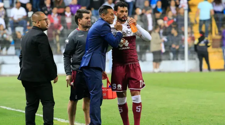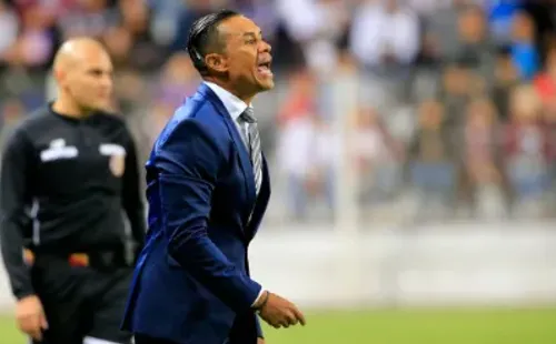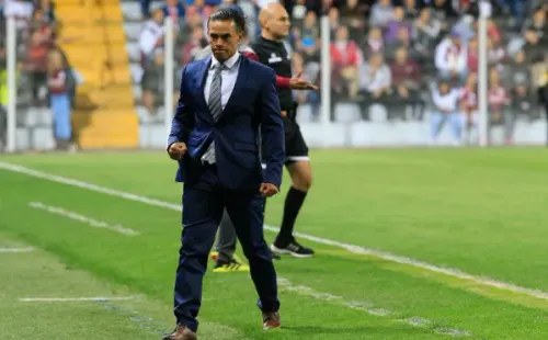 Se le notó muy inquieto en el área técnica. No le gusta para nada ese pelotazo sin sentido previamente mencionado, y se lo hizo saber a sus jugadores:haciendogestos de paciencia cuando estos se salen del libreto.