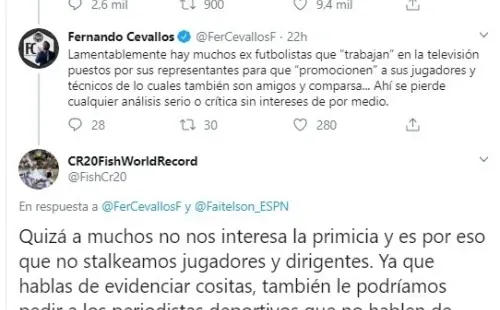 Esto no causó gracia al chapín, quien ofició como futbolista y también se ha desempeñado en el rubro periodístico. “Quizá a muchos no nos interesa la primicia y es por eso que no stalkeamos jugadores y dirigentes. Ya que hablas de evidenciar cositas, también le podríamos pedir a los periodistas deportivos que no hablen de como pegarle a la pelota, tecnica e incluso de táctica. Son un desastre“, apuntó.