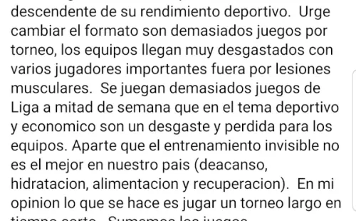 “Urge cambiar el formato. Son demasiados juegos por torneo, los equipos llegan muy desgastados, con varios jugadores importantes fuera por lesiones musculares”.