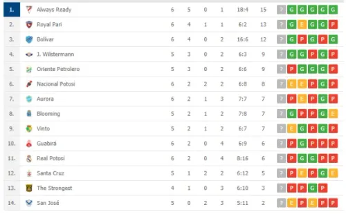 Finalmente, el Bolivar se quedó conel tercer lugar en la tabla de posiciones con 12 puntos, mientras que Aurora marcha séptimo lugar con 7 unidades.