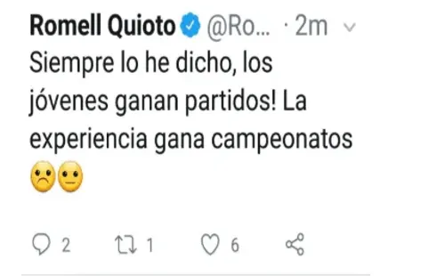 “¡Siempre lo he dicho, los jóvenes ganan partidos! La experiencia gana campeonatos” escribió el delantero en su cuenta oficial de Twitter.