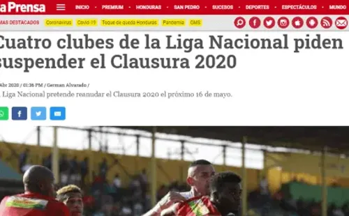 La liga hondureña fue unas de las perjudicas por el COVID-19. El Clausura 2020 quedó parado, pero no por tiempo indeterminado. Salomón Galindo, secretaride la Liga Nacional, sugirió que se volviera a disputar la competición apartir del 16 de mayo. De esta manera, se podrá establecer quién se queda con el campeonato, peleando entre Montagua y Marathón, y quién pierde la categoria.