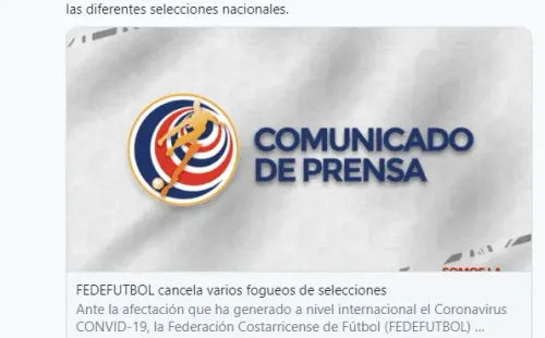 Ante la afectación que ha generado a nivel internacional el Coronavirus CONVID-19, la Federación Costarricense de Fútbol (FEDEFUTBOL) determinó cancelar una serie de encuentros amistosos que se tenían programados para diferentes selecciones nacionales.
