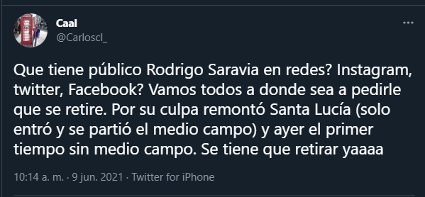 Las redes sociales explotaron con otro partido malo de Rodrigo Saravia y salieron a criticarlo muy duramente. Los mensajes contra el futbolista del Crema no pararon y hasta pedían que se vaya de su equipo. Un mal momento para ser el centrocampista y ver como lo trataban los fanáticos de la selección.